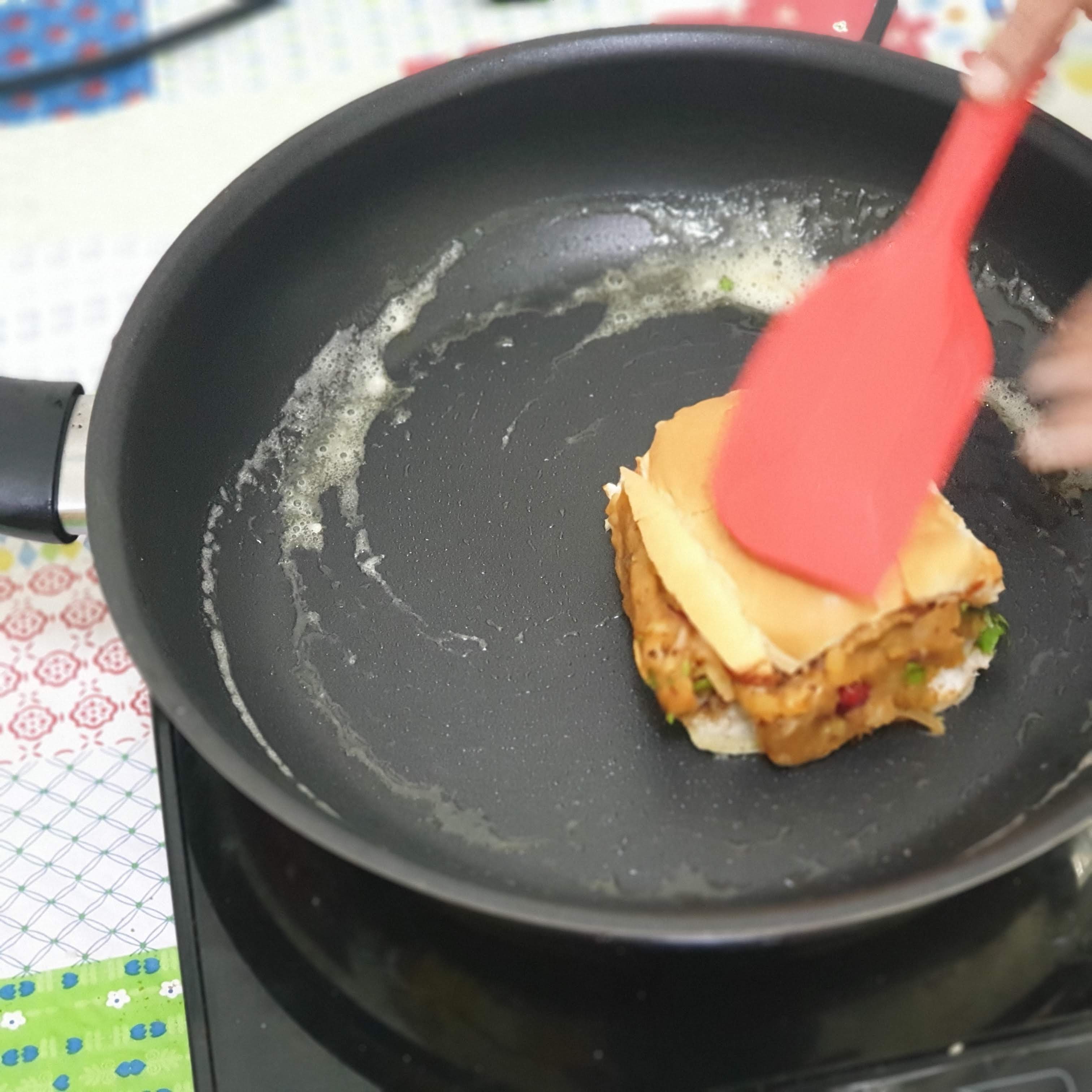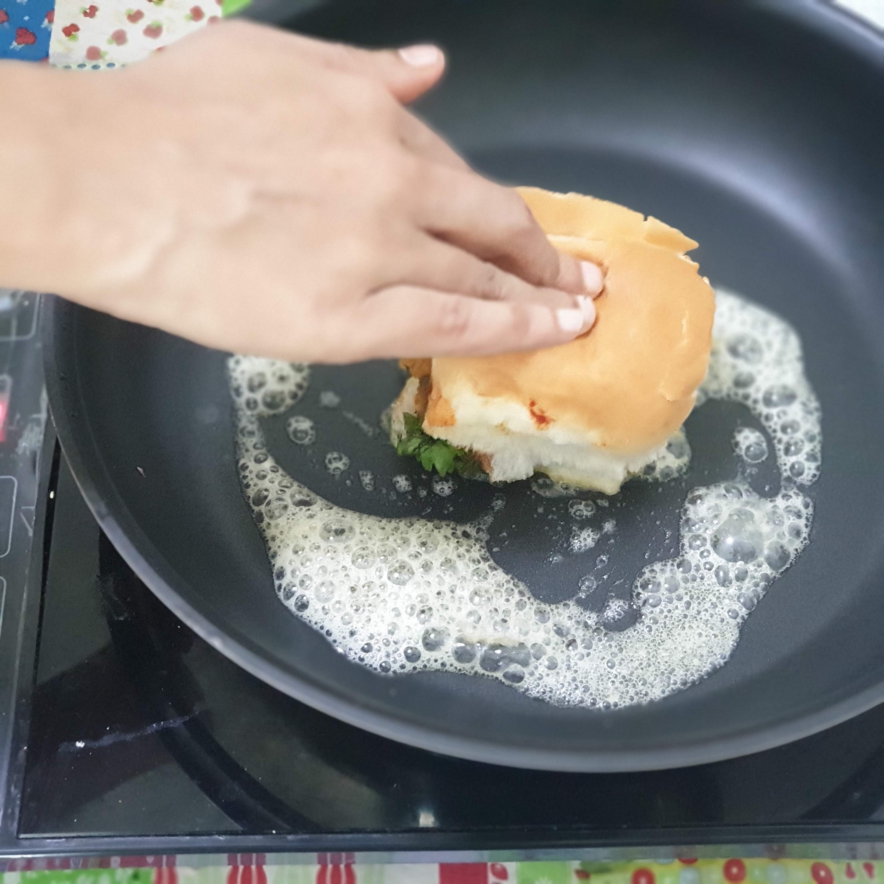 - Put the buns filled with ingredients (done in previous step) in the pan.