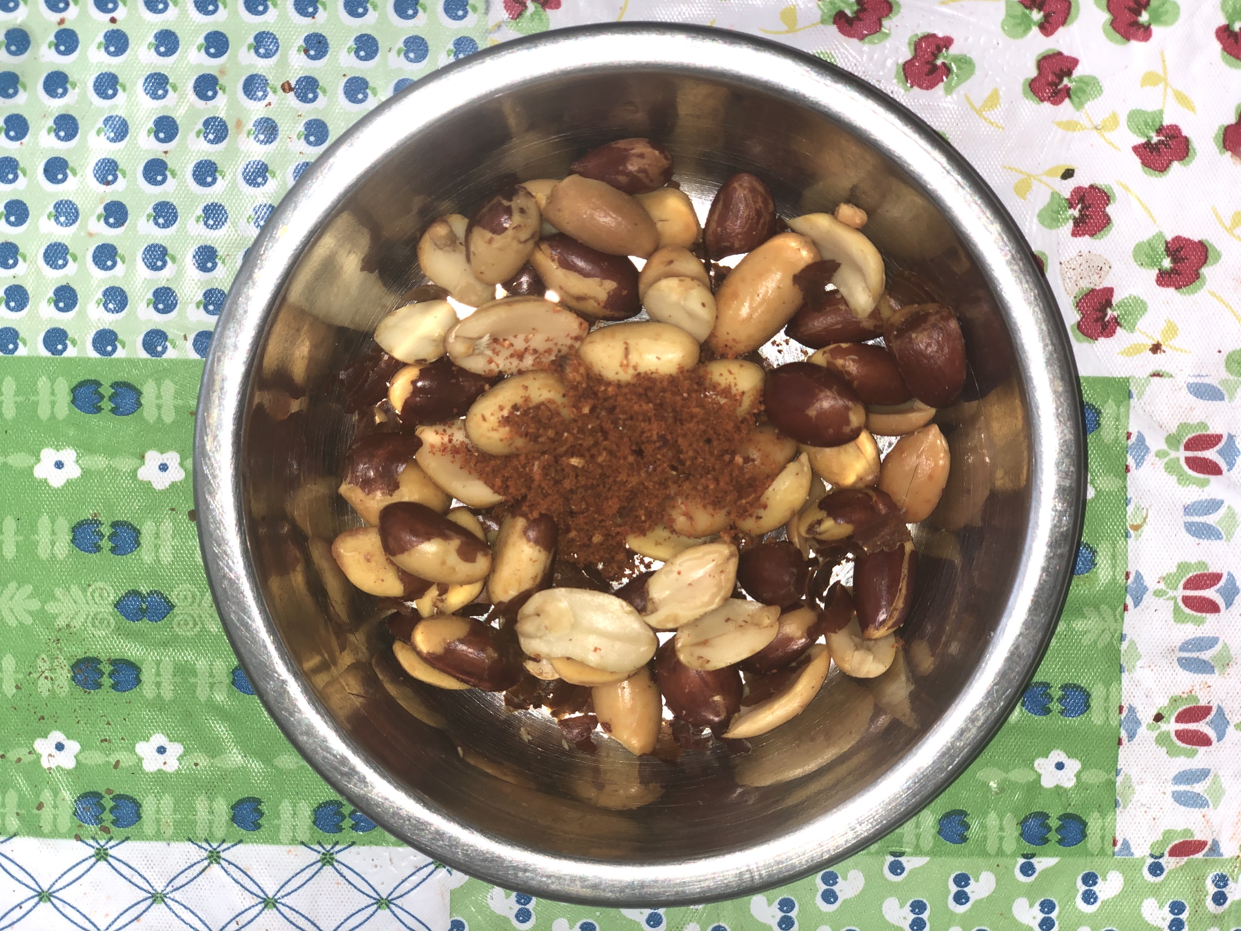 - Add some masala peanuts. Use the above ingredients such that the bun is filled to half size only.