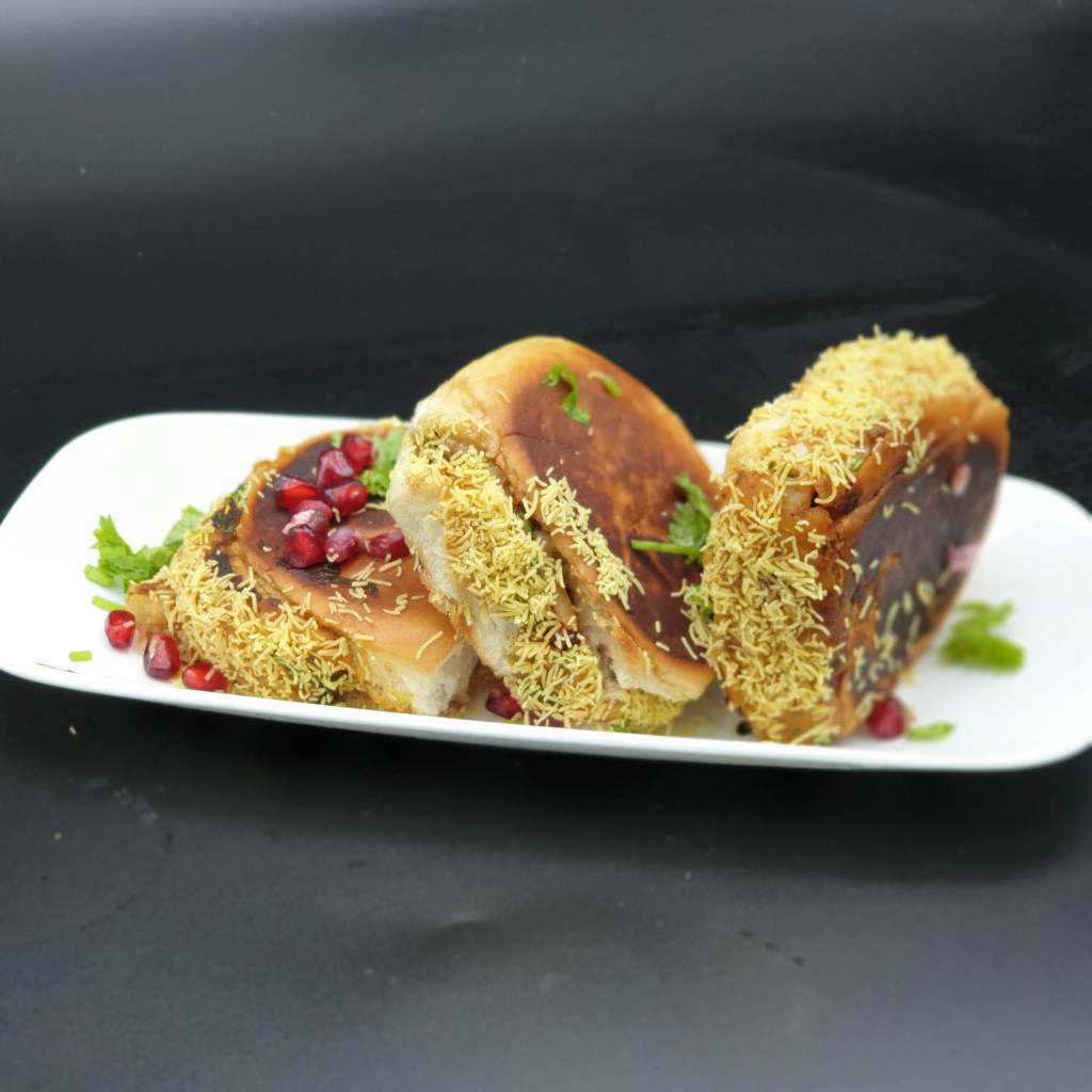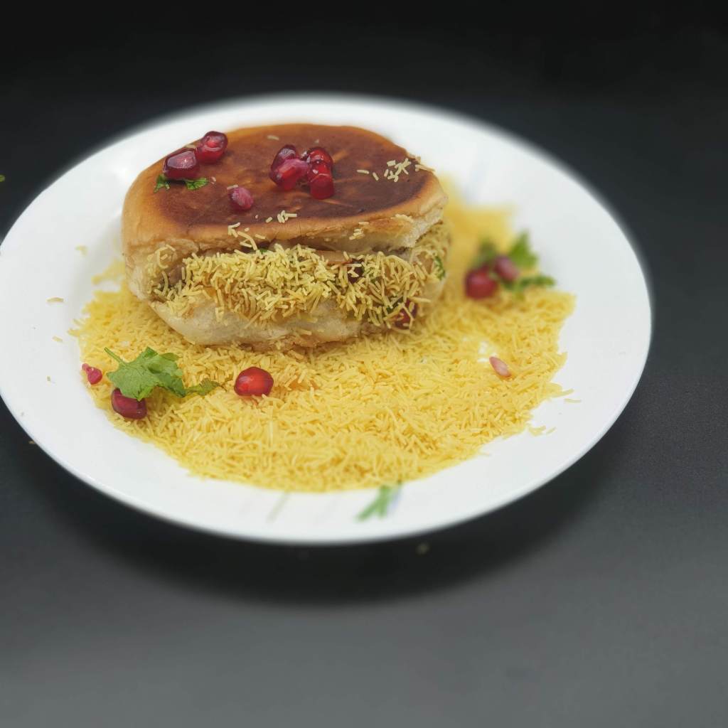 When it turn into golden brown and get proper crunch then remove from the pan and deep into the “Sev” (gram-flour vermicelli’s). It will enhance the look as well as taste of dabeli and garnish with some pomeogranate .