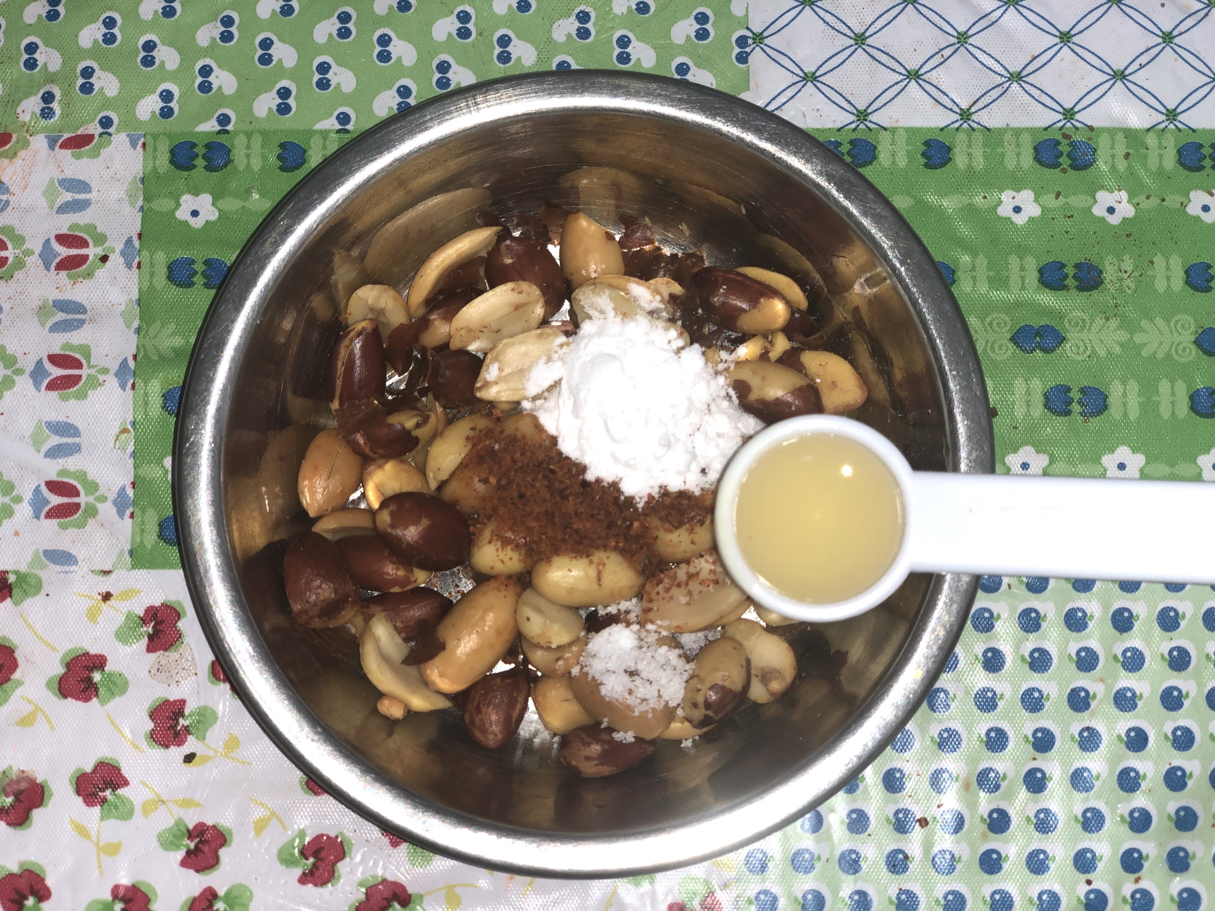 we can dry roast all the above ingredients except powdered sugar and coarsely grind it in a mixi jar.Roast sesame seeds separately as it gets burnt easily.