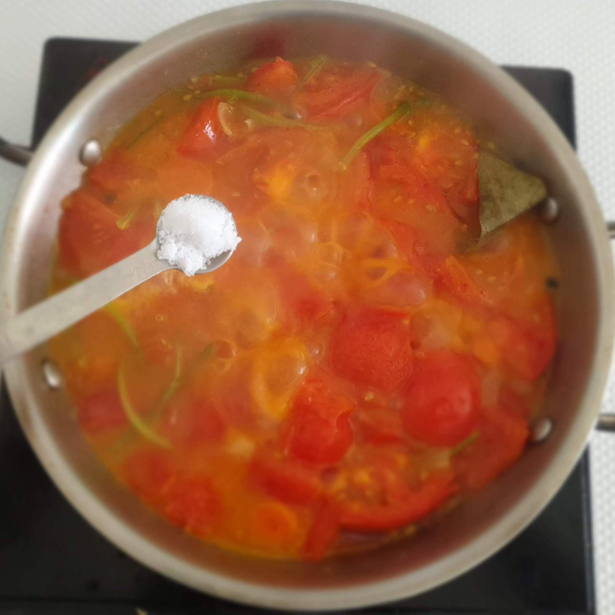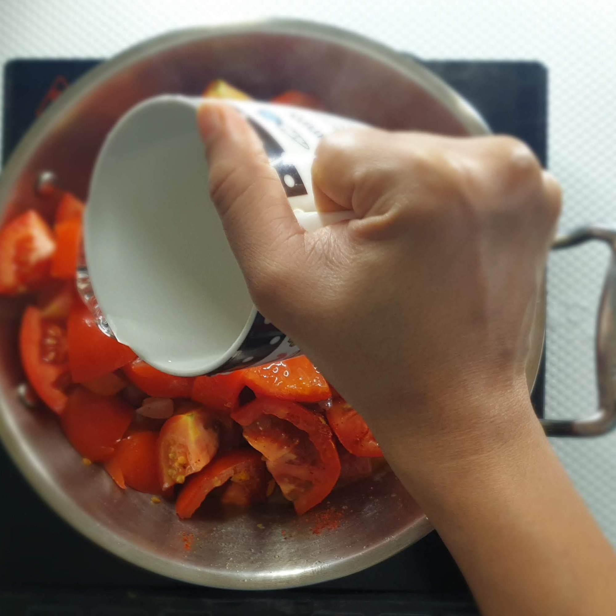 - Add enough water so that the tomatoes are just immersed init completely (approximately 1 cup of water should be sufficient) .