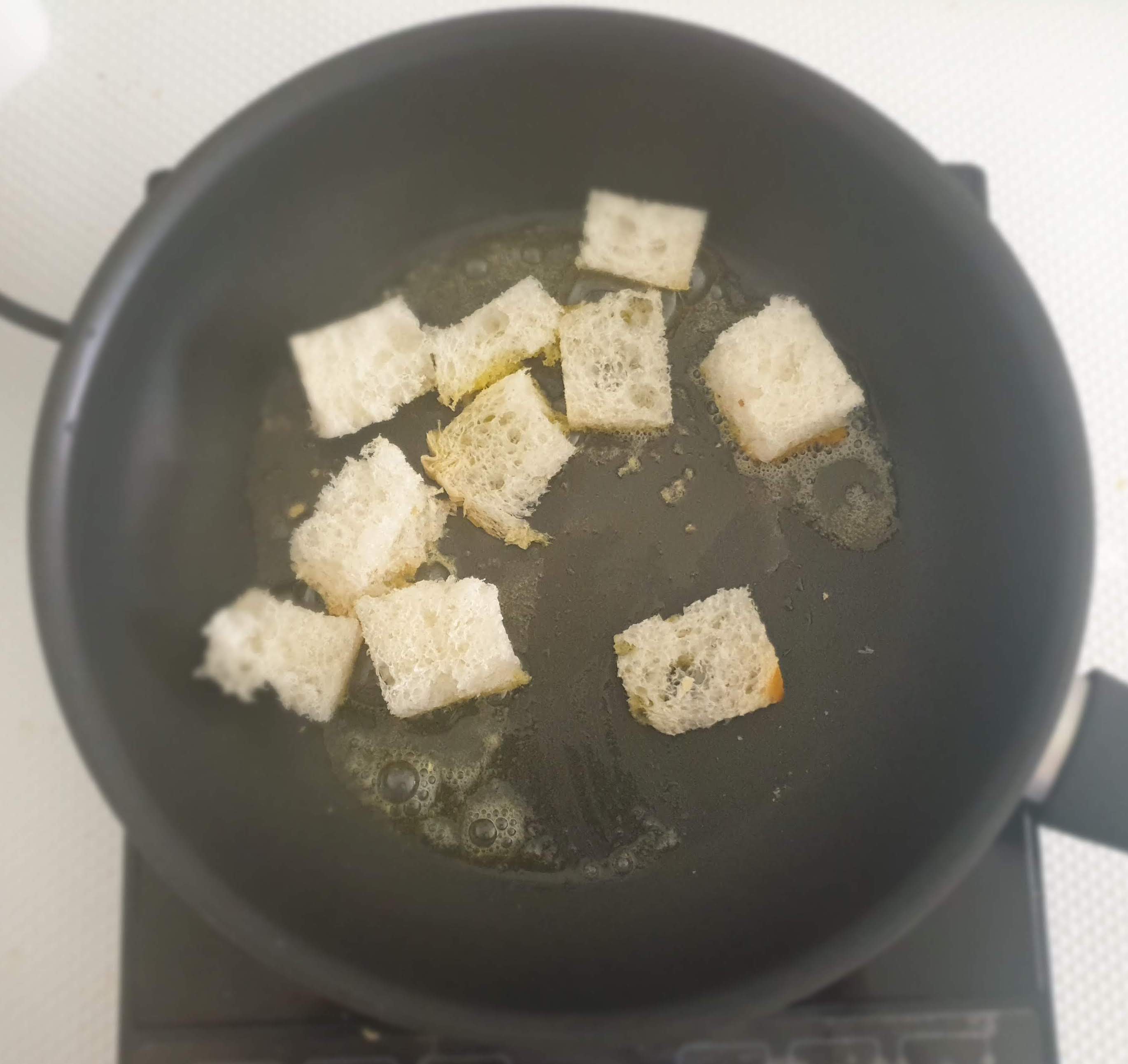 Let’s make Croutons for the soup :