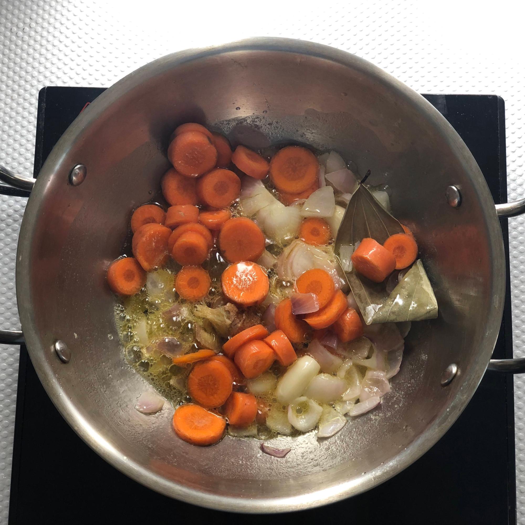 - Add carrots and tomatoes and saute a little .