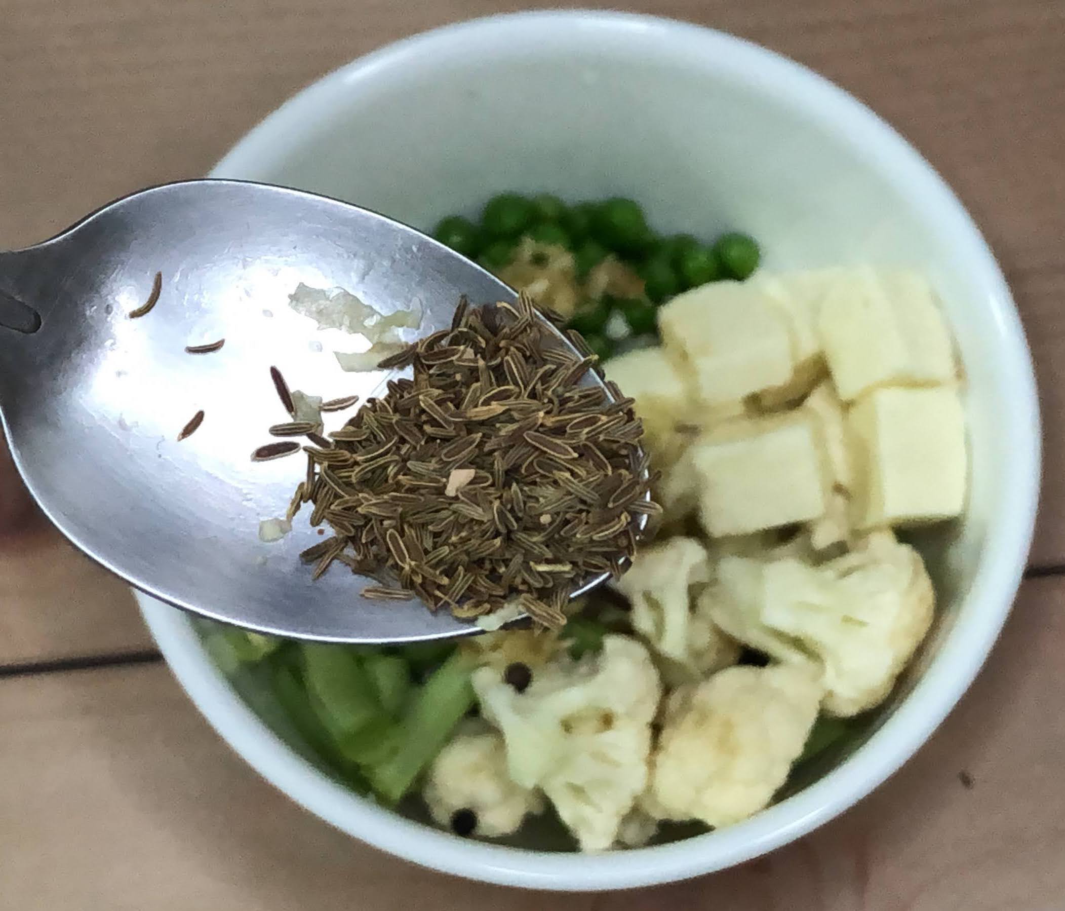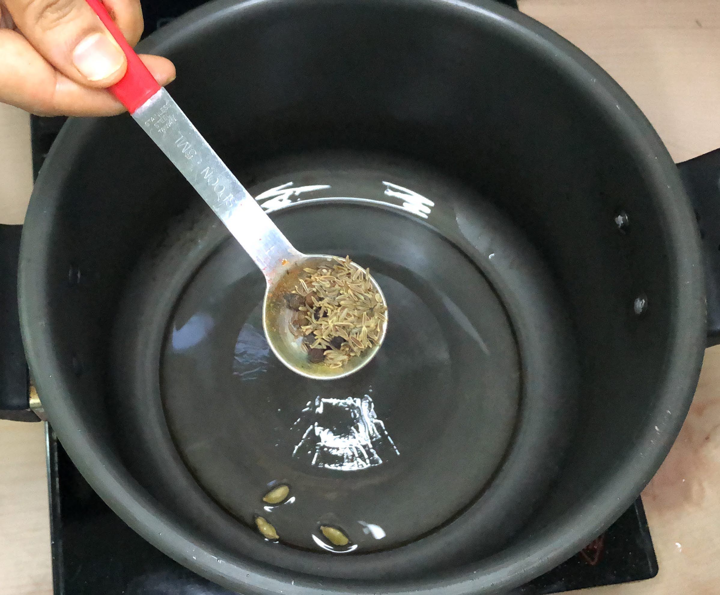 - Add 1/2 tsp of shahi jeera (black cumin seeds).