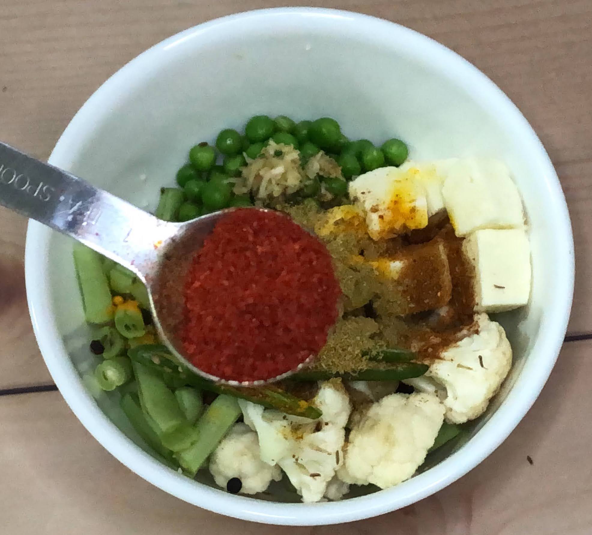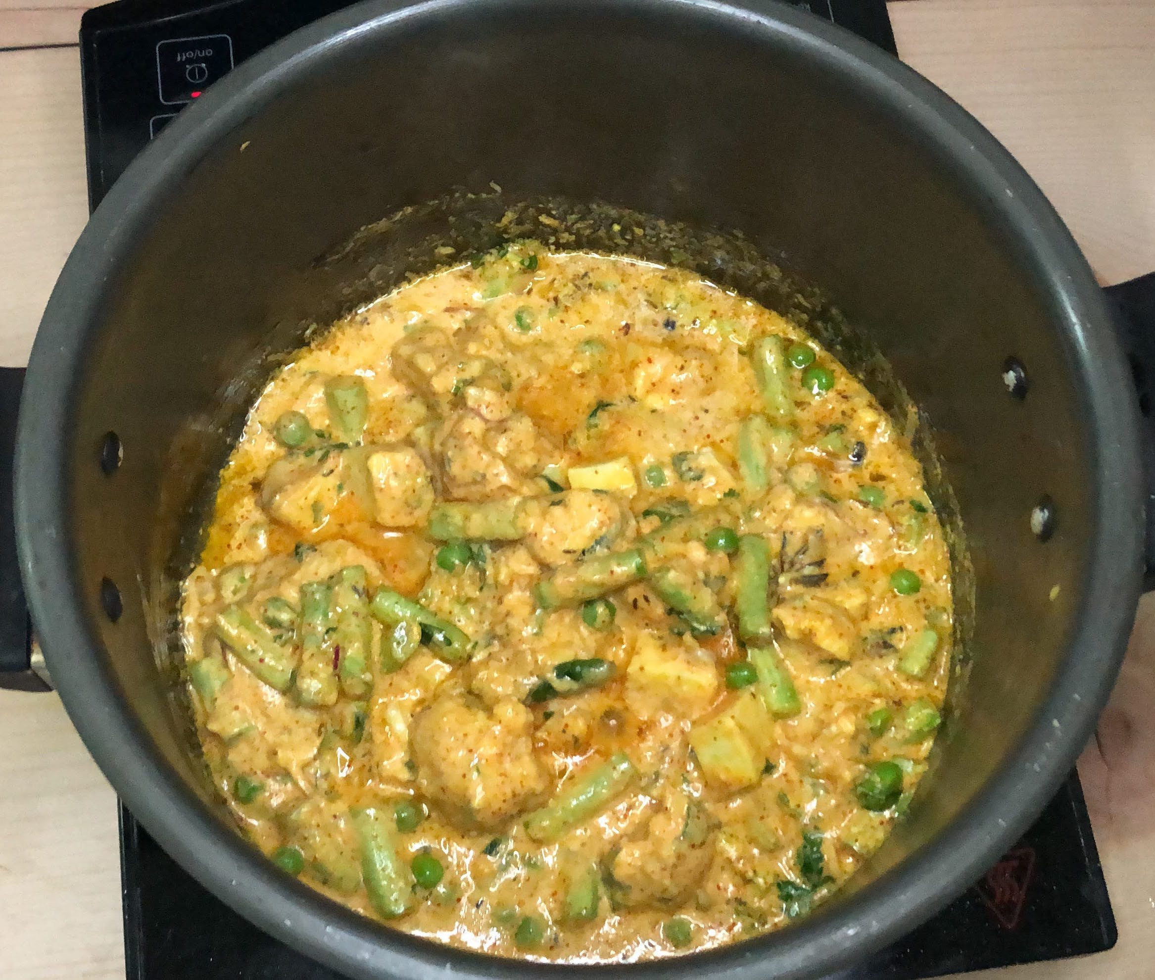 - Adjust the salt and keep the lid and cook for 5 min.(Don’t cook vegetables completely as they are going to cook in dum.)