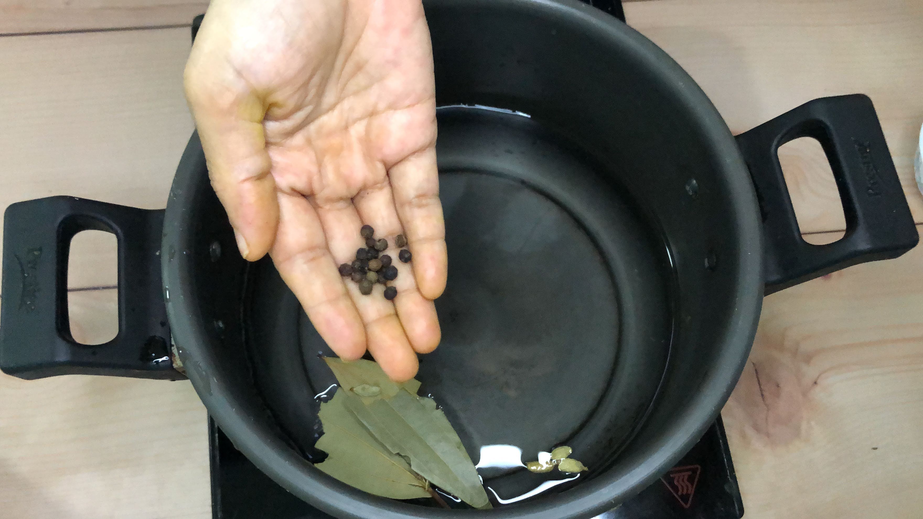 - Add some cardamom, black cumin seeds (shahi jeera) , and peppercorns.