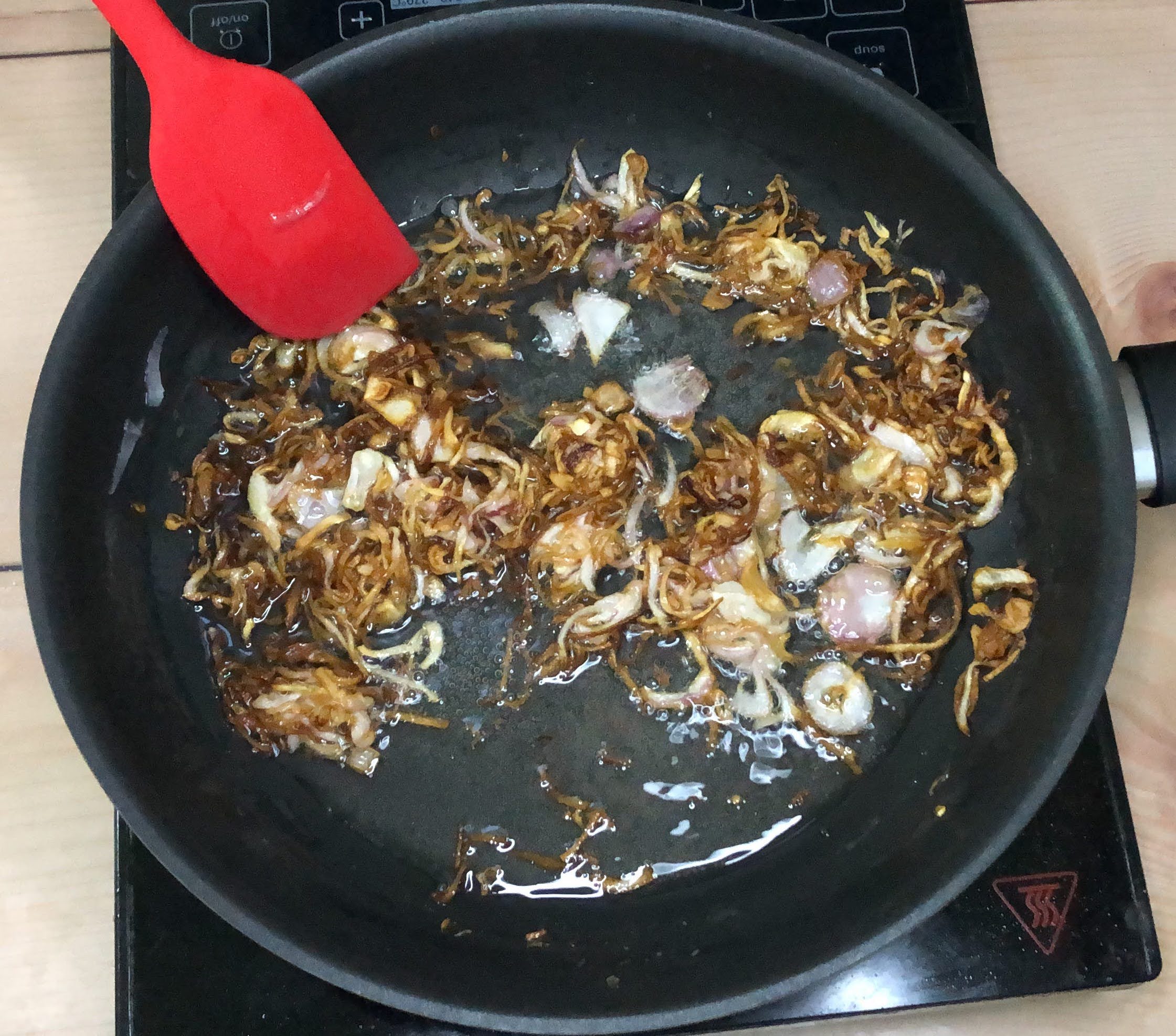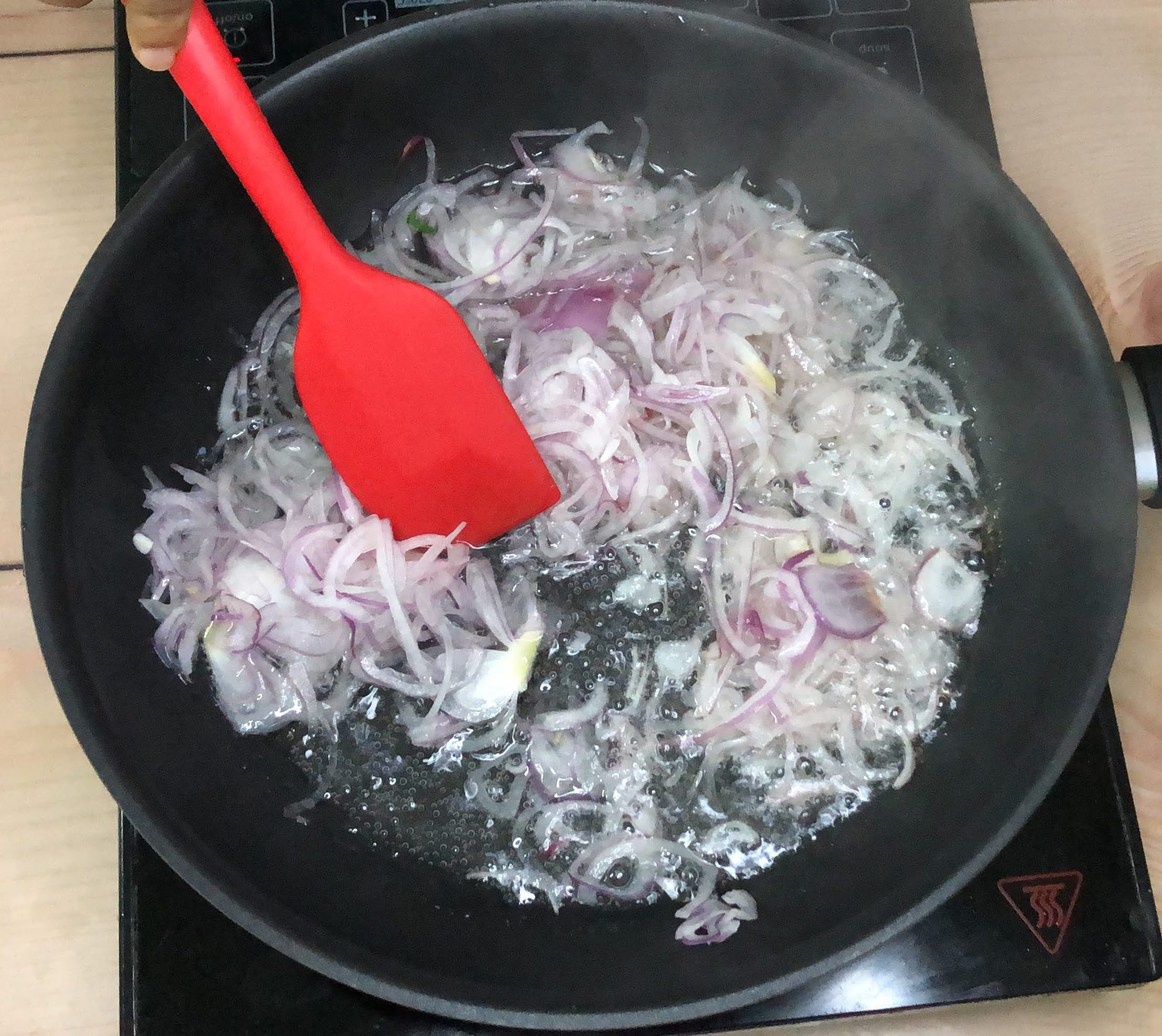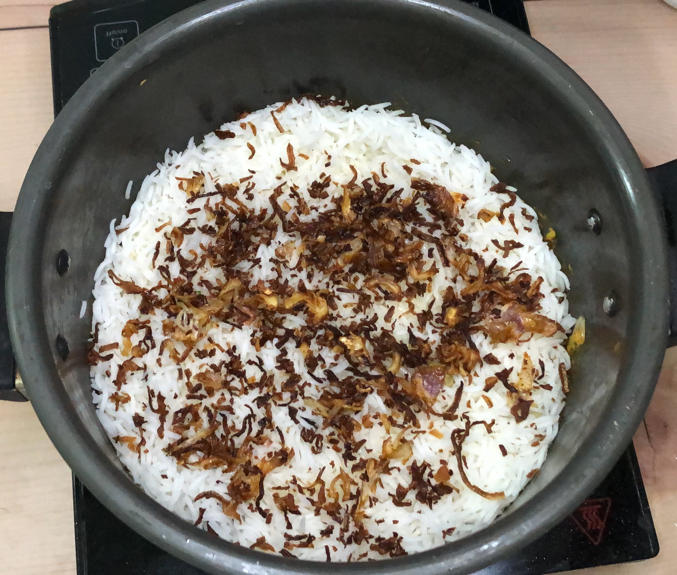 Basically ,onions are finely sliced and deep fried in a oil until it gets nice brown colour and crisp.These crispy brown onions are called birista. Birista is used in biryani as well as in many curries.