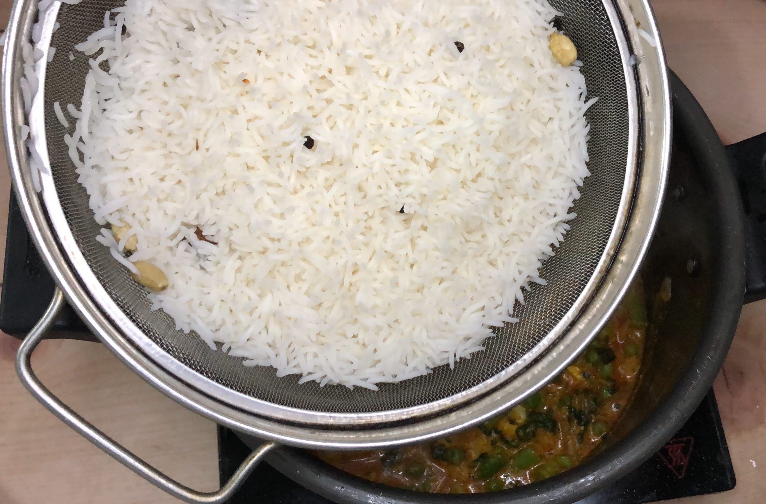 - Cook rice till 80 percent done.Do not cook rice completely.