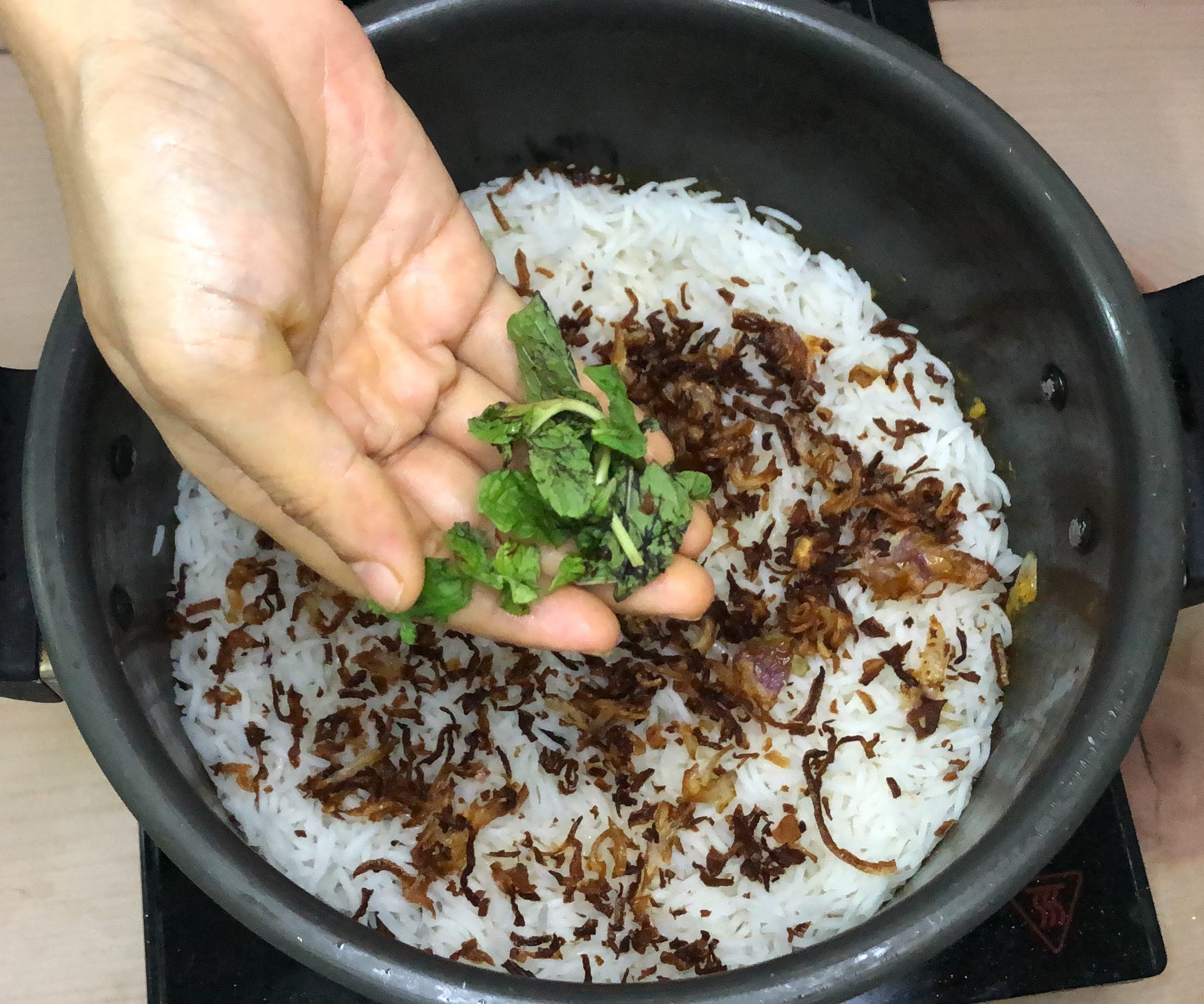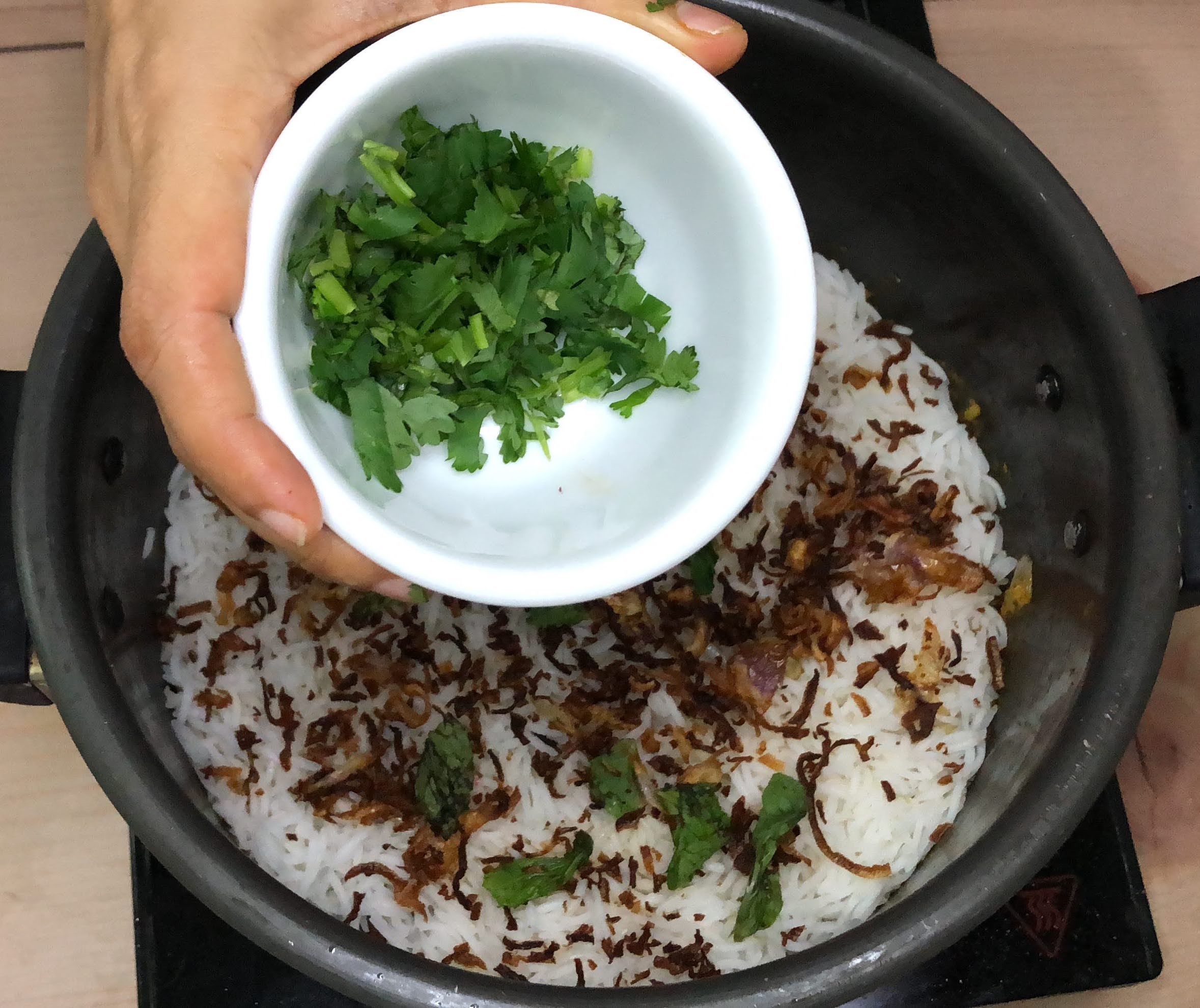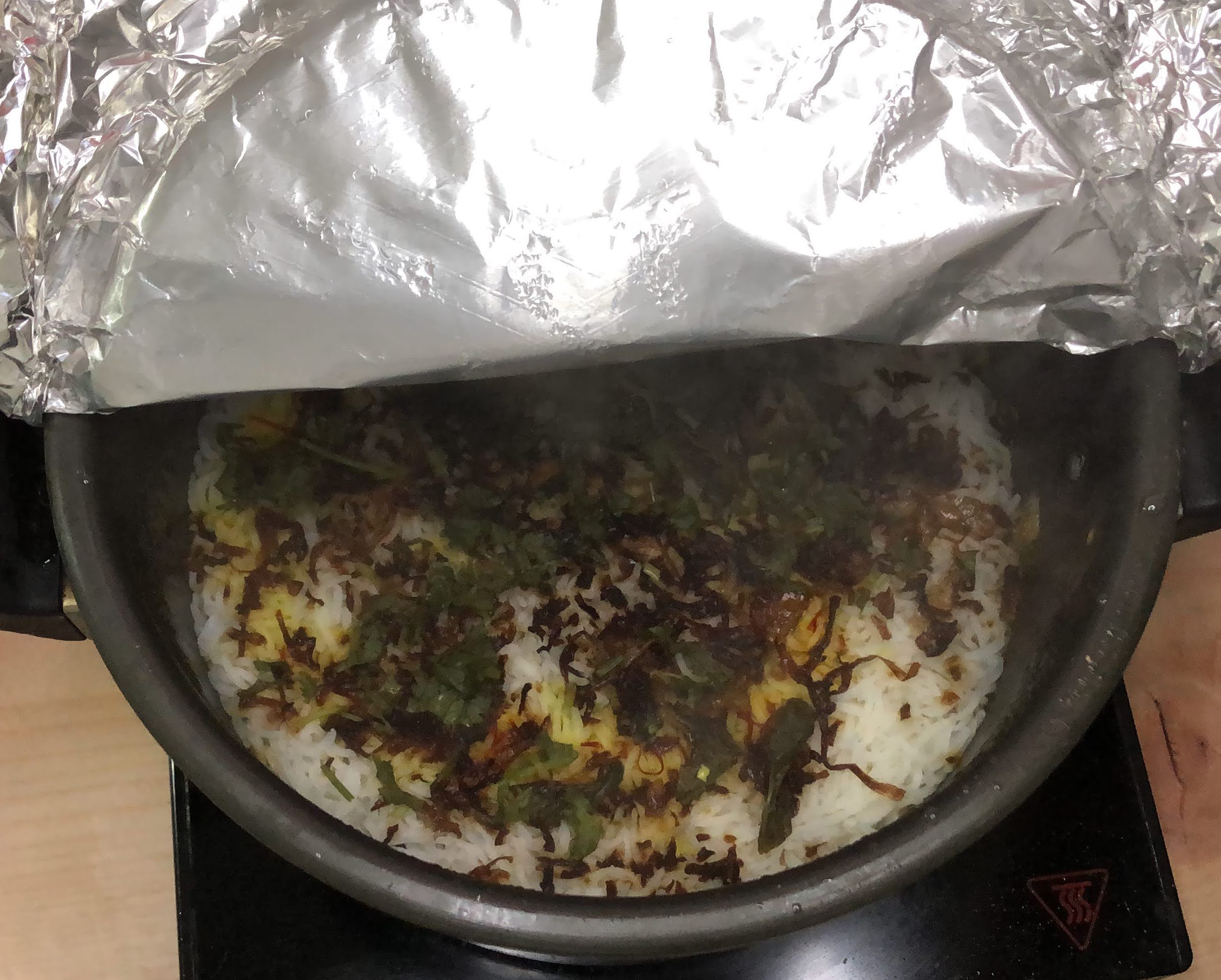 - Put lid and cook the biryani on very low flame for 15 -20 mins.