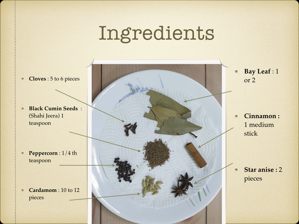 - Black Cumin Seeds :(Shahi Jeera) 1 teaspoon
