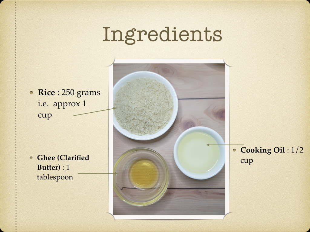 - Take 250 grams of basmati rice in a bowl (approx 1 cup).